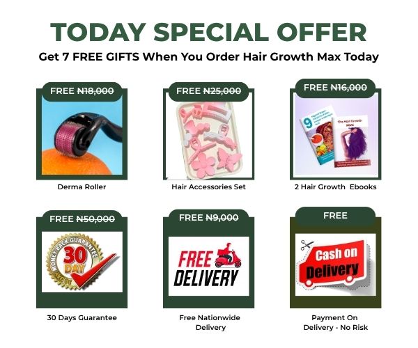 I lost a lot of hair after giving birth. My crown area was just smooth and my confidence dropped. I wore wig every day and felt so bad looking in the mirror. My friend in Lagos recommended Hair Growth Max and I ordered. I started noticing real changes in the 4th week. My hair is growing, and I don’t shed like before. No dandruff again, no itching. I even use it on my daughter now. It’s gentle and natural. I’m so happy — I’ve finally found something that works and doesn’t burn my scalp.