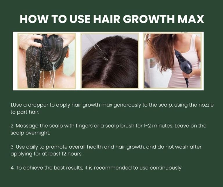 - Use a dropper to apply hair growth max generously to the scalp, using the nozzle to part hair.